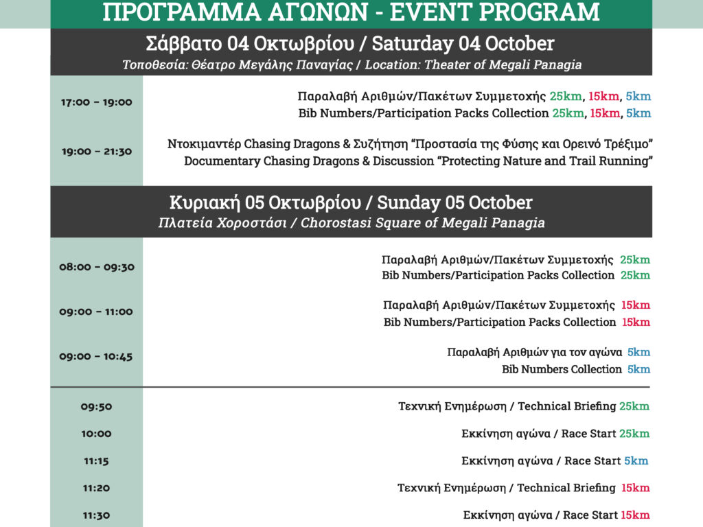 Οι δηλώσεις συμμετοχής παρατείνονται μέχρι και το Σάββατο 27.09 στις 23:59 το βράδυ (ή μέχρι τη συμπλήρωση του μέγιστου αριθμού συμμετεχόντων) μόνο για τους αγώνες των 25km και 15km. Οι …